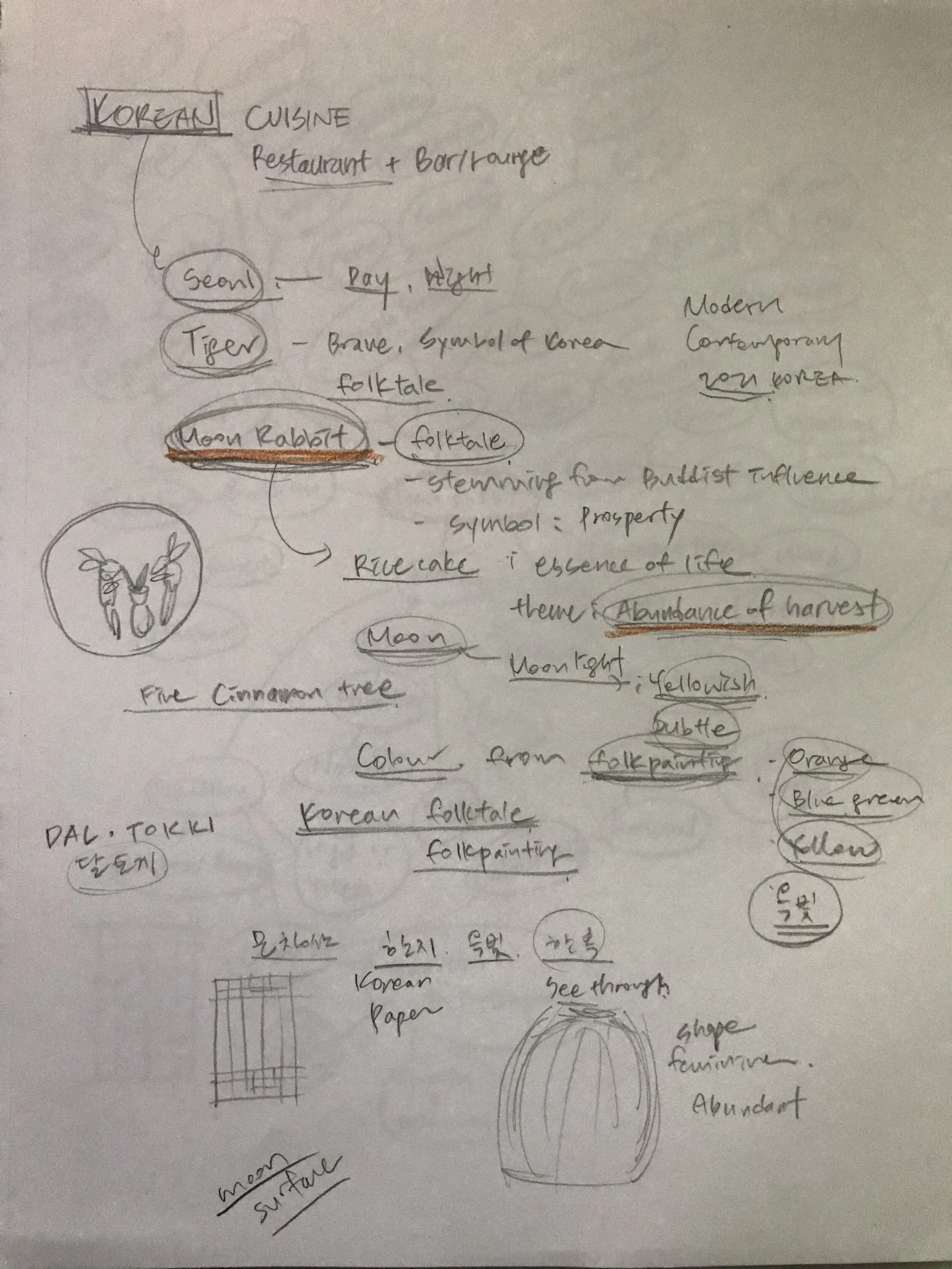 Daltokki is a Korean restaurant & bar located in the South Main neighbourhood of Vancouver, BC. The name of the restaurant comes from the legend of the “daltokki”, which means “moon rabbit” in Korean. While western cultures have tended to see a ‘Man on the Moon’ in the pattern on the moon’s surface, Asian cultures have described it as looking like a rabbit. This has given rise to a folktale of rabbits pounding rice cakes under a cinnamon tree on the moon. This legend represents several significant symbols, including abundance of harvest, longevity of life, and essence of vitality. Daltokki will use this folktale as a basis for a contemporary style Korean restaurant.