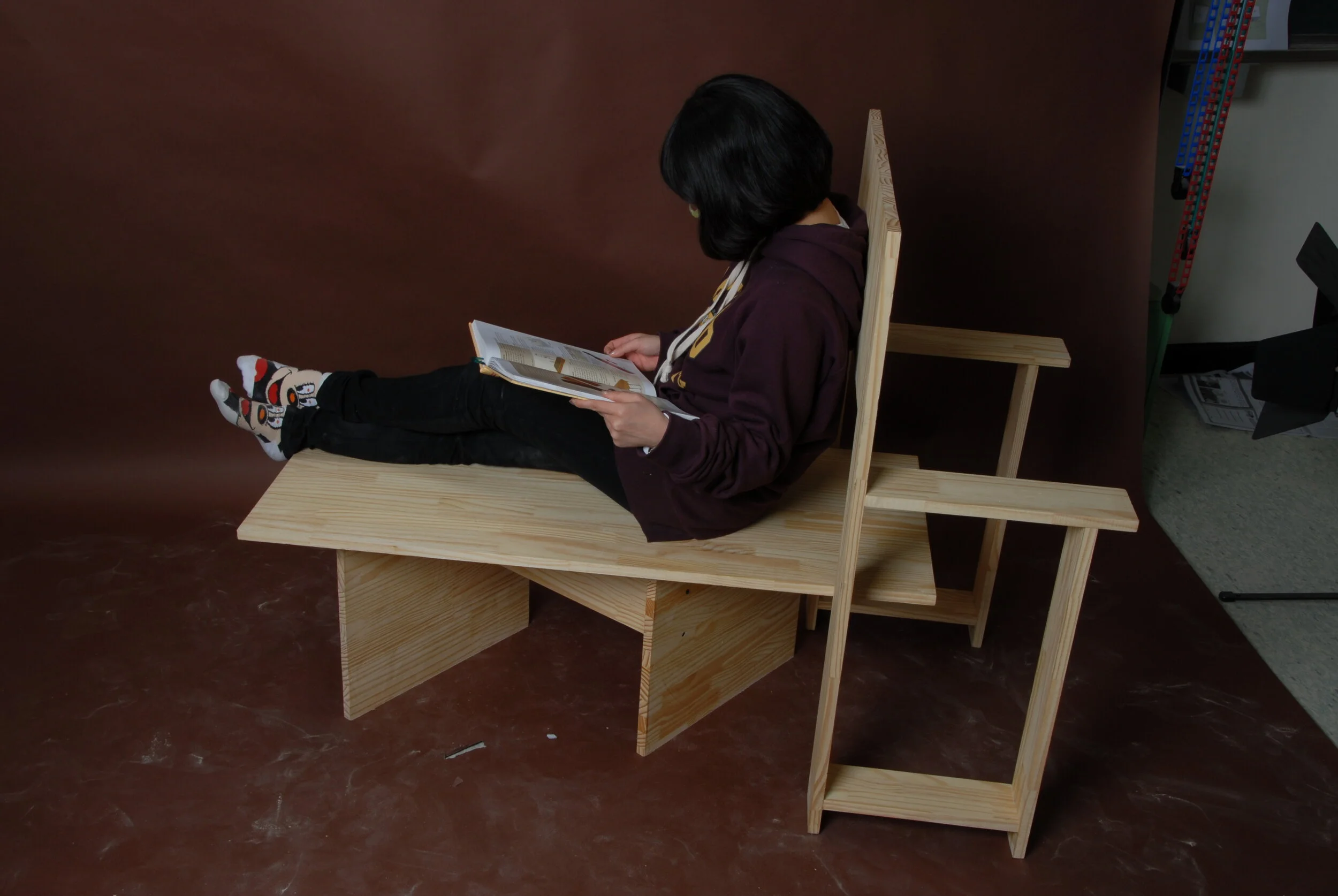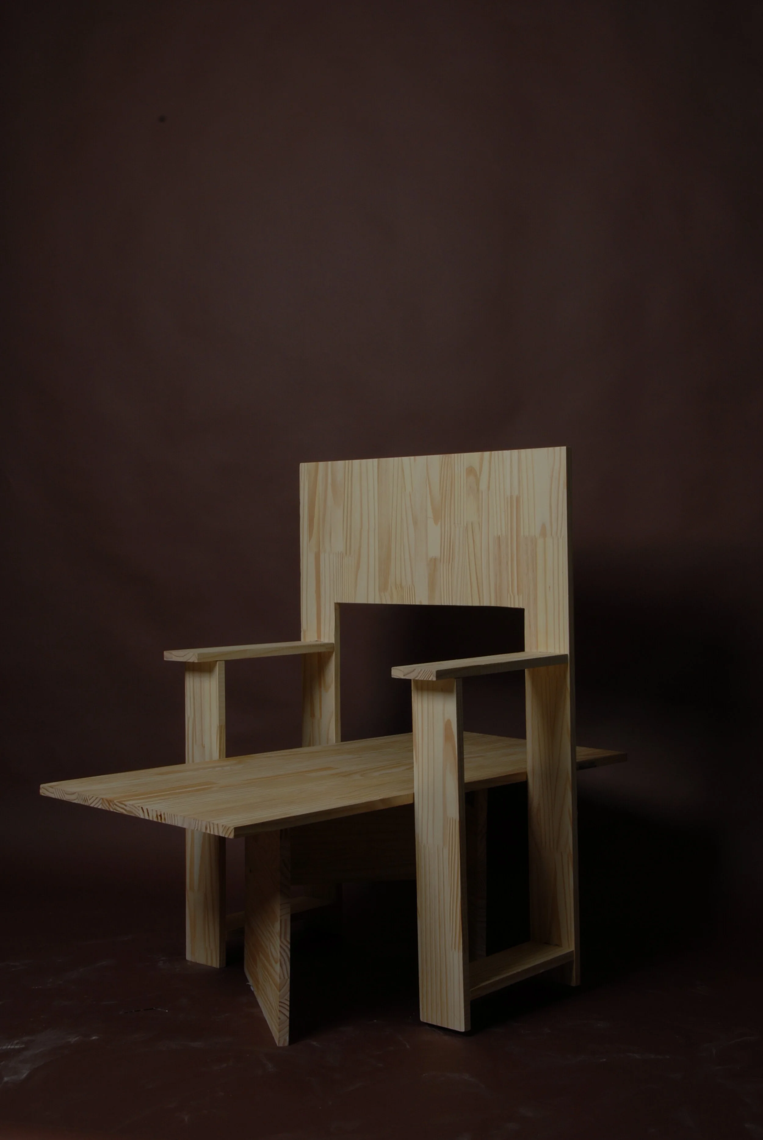 Straight lines and 2D planes make a structural form. This conceptual design embraces the most basic function of the chair which are back and sit and also breaks the function.